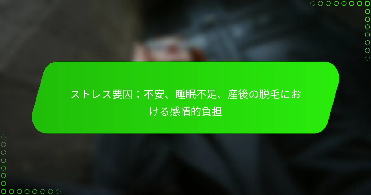 ストレスも、産後によく見られる要因であり、脱毛にさらに寄与する可能性があります。高いストレスレベルはホルモンの不均衡や脱水を引き起こし、髪の健康に悪影響を与えるサイクルを生み出します。水分補給とストレス管理の両方に対処することが、産後の髪の健康を促進するために重要です。